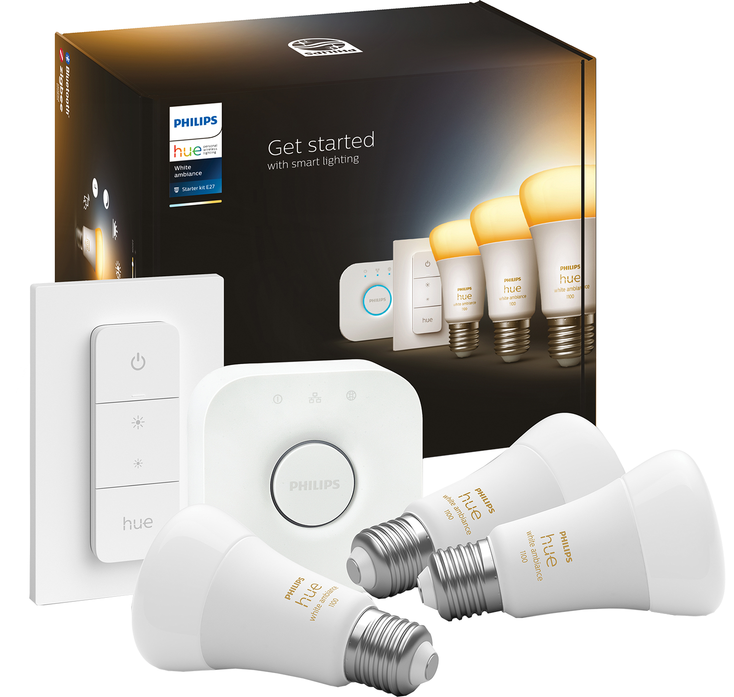 Philips Hue White Ambiance Starter Pack E27 met 3 lampen, dimmer + Bridge