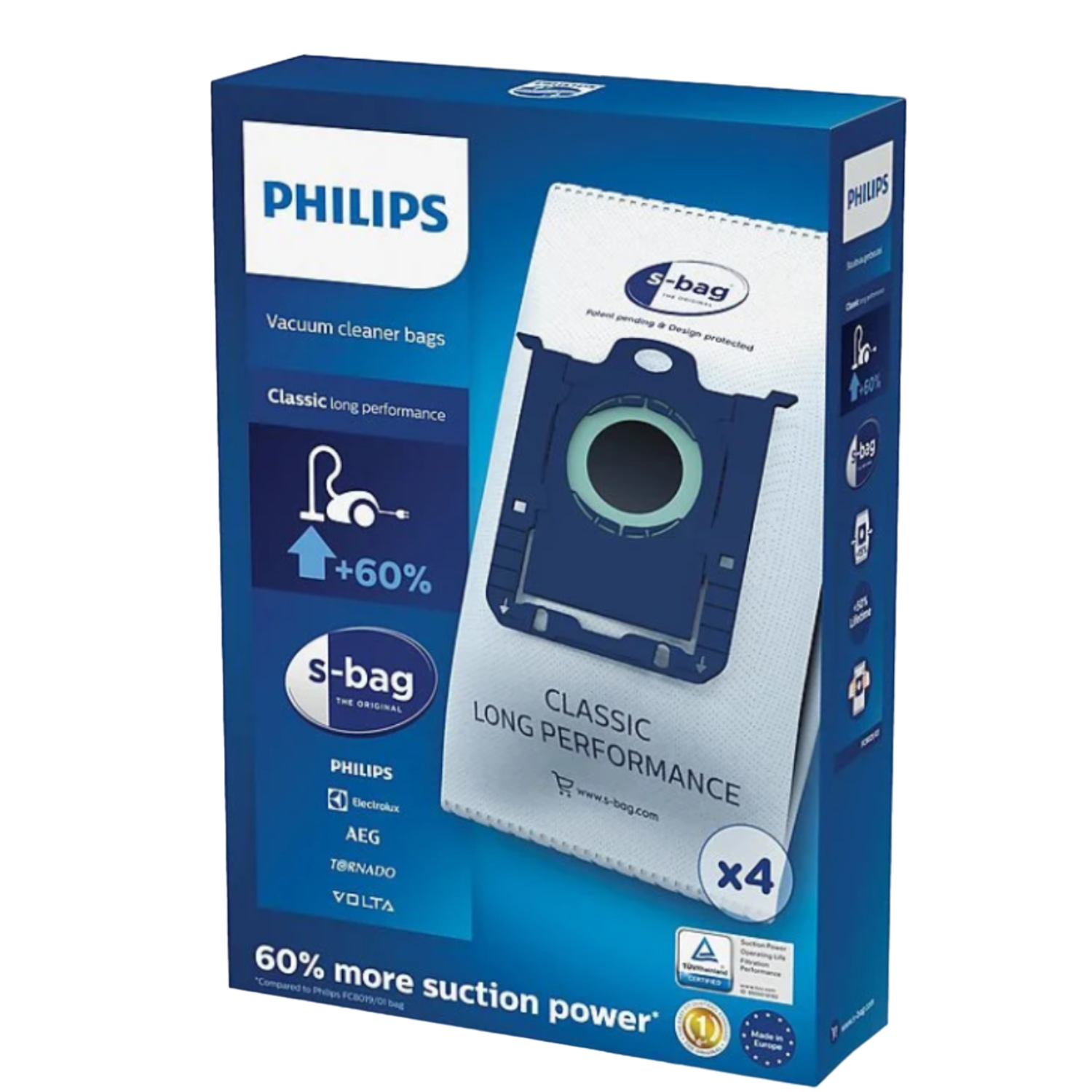 De Philips s-bag FC8021/03 is de originele wegwerpstofzak voor alle cilinderstofzuigers van Philips en de Electrolux Group. S-bag is een standaard wegwerpzak die algemeen verkrijgbaar is en eenvoudig te herkennen is aan het logo. Dankzij het niet-verstoppende materiaal, zijn de schoonmaakprestaties van de S-bag Classic – Long Performance 50% zo langdurig als die van een standaard stofzak.