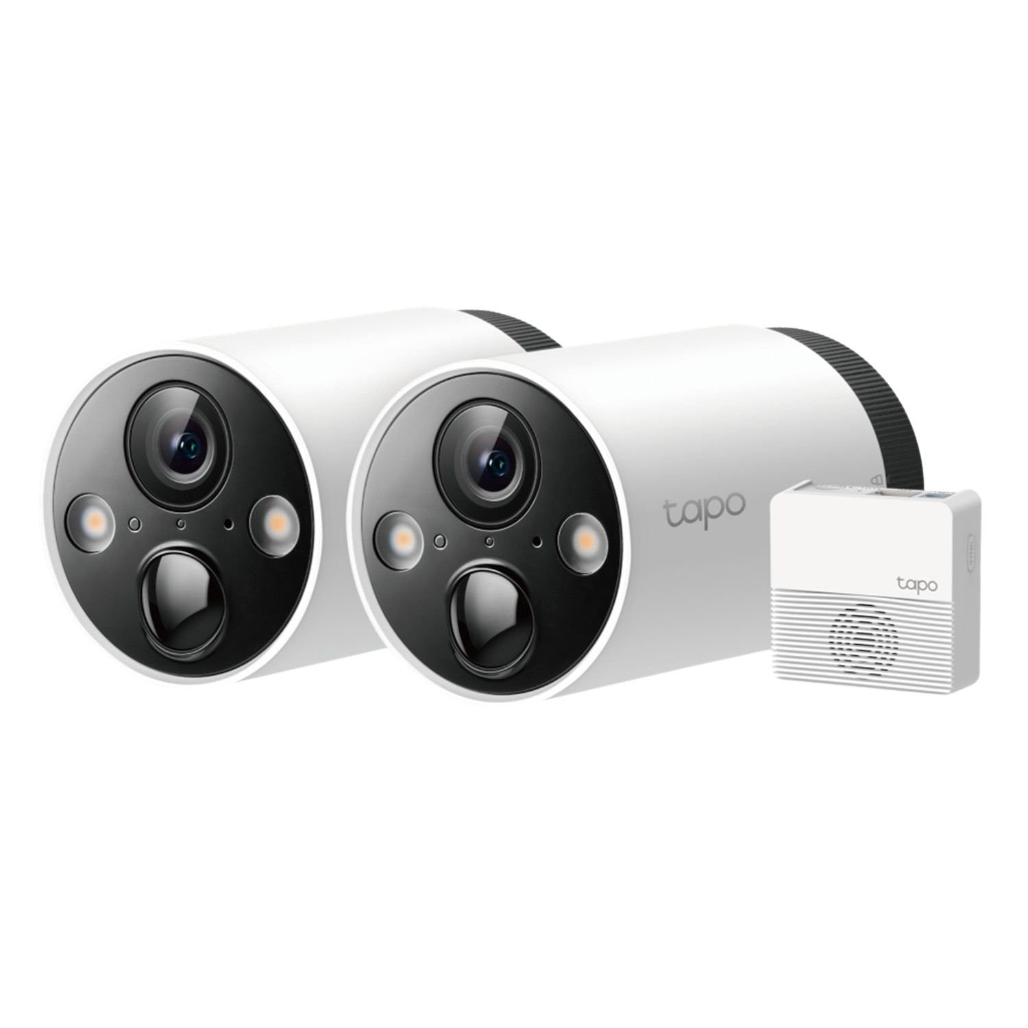 In dit IP camera pakket van TP-Link vind je 2 Tapo C420S2 camera’s. Met deze camera’s houd je gemakkelijk 2 binnen- of buitenruimtes in de gaten via de app. De camera’s hebben 2K beeldkwaliteit waardoor je ook bij inzoomen relatief scherp beeld behoudt. Ook `s nachts houd je alles in de gaten dankzij de nachtvisie. De accu van deze camera’s gaat 180 dagen mee met zo’n 10 filmactiviteiten per dag. Instellingen, temperatuur en gebruik beïnvloeden de batterijduur. De slimme camera herkent mensen, dieren en auto’s. Zo gaat je alarm bijvoorbeeld niet af van een vogel die voorbij vliegt. Het alarm werkt met geluid, en een lichtsignaal. Je verbindt de camera via wifi, en beelden bewaar je op een micro SD kaart die je in de meegeleverde bridge stopt. Zo bewaar je de beelden van beide camera’s op één plek.